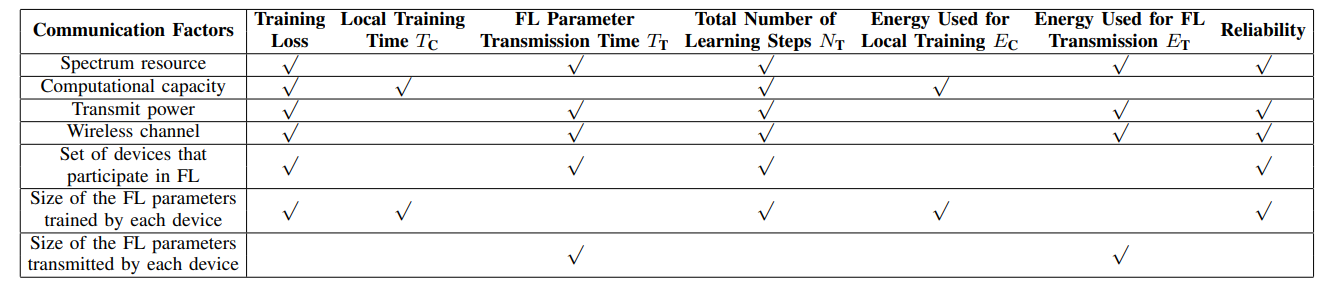 [50]–[52]的作者研究了局部ML模型更新和全局ML模型聚合之间的权衡,以最小化局部ML模型训练和传输的总能耗或FL训练损失。