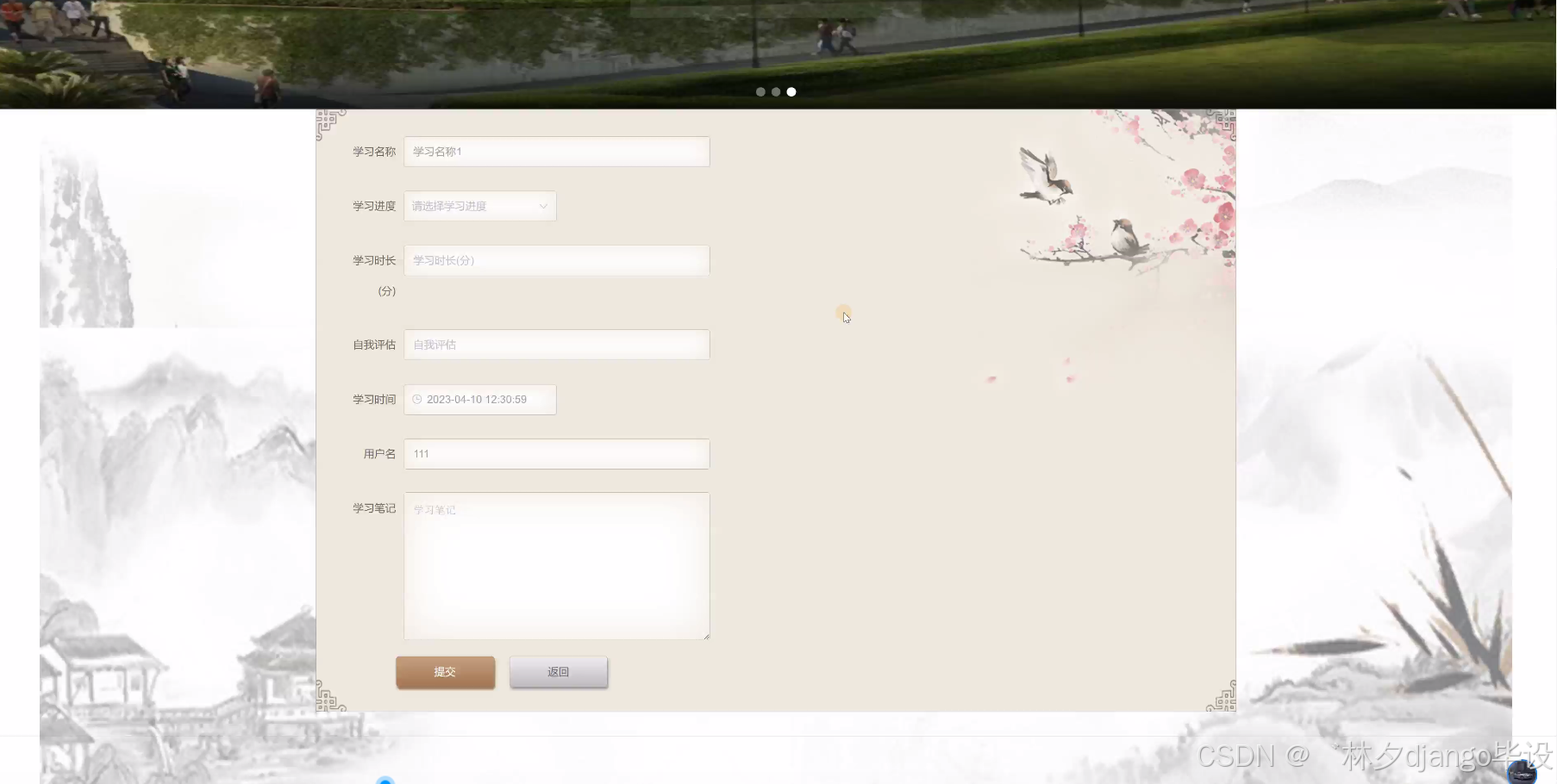 - 技术融合问题:在django+vue自主学习系统中,确保Django后端与Vue前端能够高效、稳定地协同工作,解决数据交互、接口调用等技术融合方面的问题,保证系统的各项功能如学习分类、学习视频、学习资源、学习计划、学习进度、监控视频等能够正常运行。