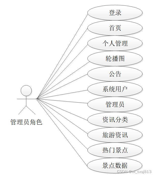 旅游数据可视化中管理员角色用例图如图2.2所示: