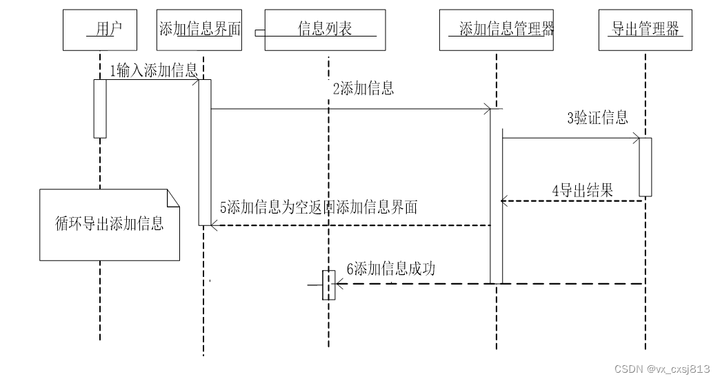 管理员以及用户登录后均可进行添加信息操作,添加信息模块顺序图如图4-4所示。