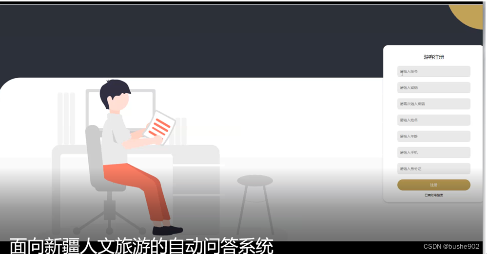 游客注册,在游客注册页面通过填写账号,密码,确认密码,姓名,年龄,手机,身份证等信息进行注册操作,如图4-2所示。