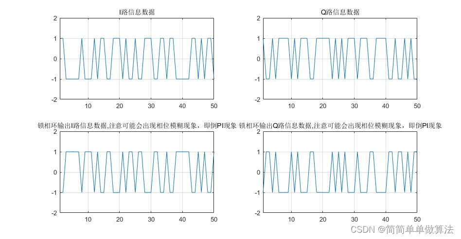 title('锁相环输出I路信息数据,注意可能会出现相位模糊现象,即倒PI现象');