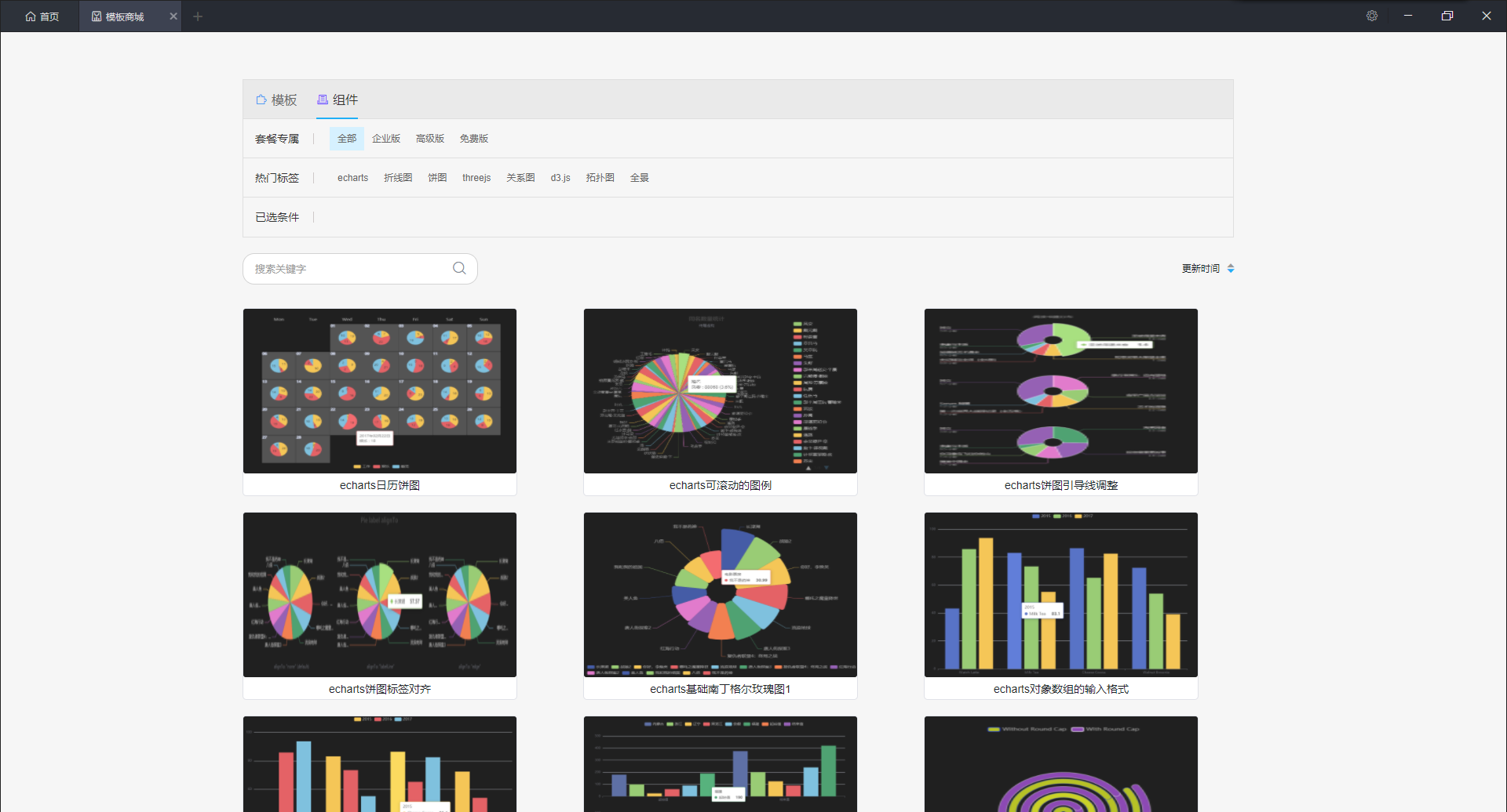 在山海鲸可视化中不仅提供了70多种各类可视化组件,而且还支持导入多种自定义组件,包括echarts图表。