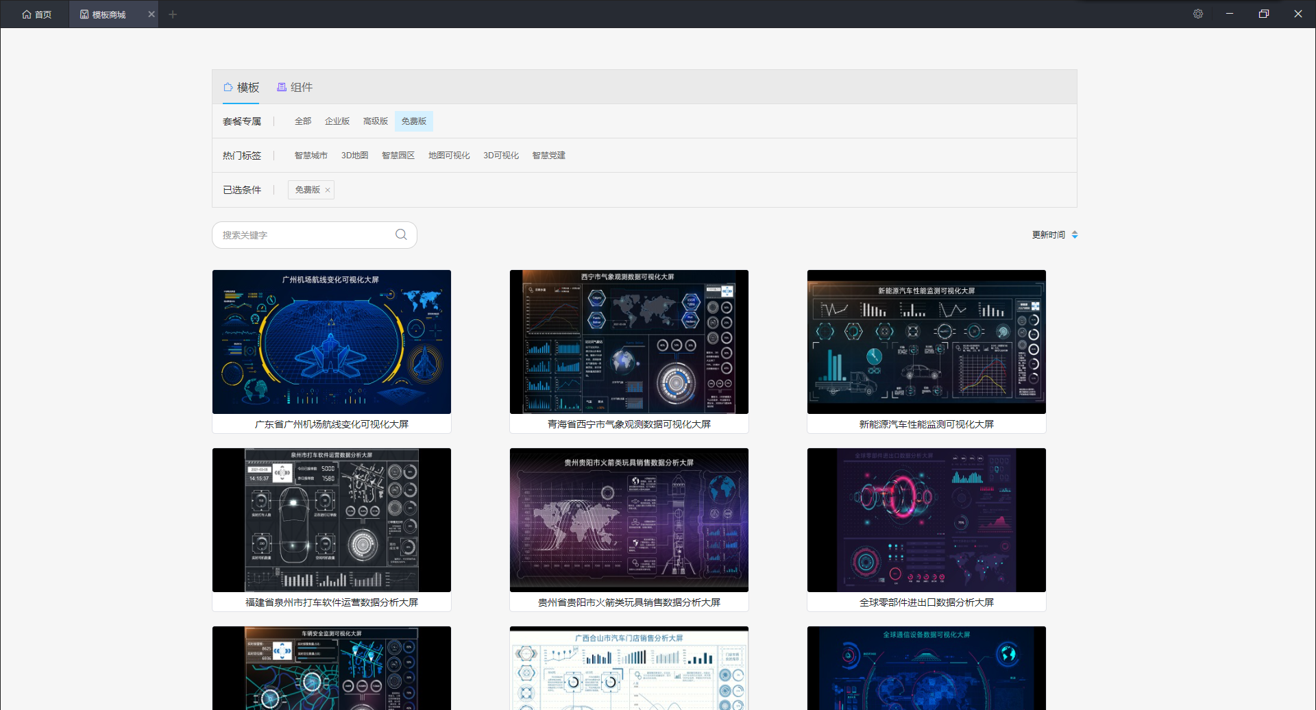 山海鲸可视化提供了许多包含各个行业的数据可视化大屏模板,这些模板可以一键下载并替换数据,其中的元素你也可以自由修改、替换,轻松打造出属于你自己的数据可视化大屏。