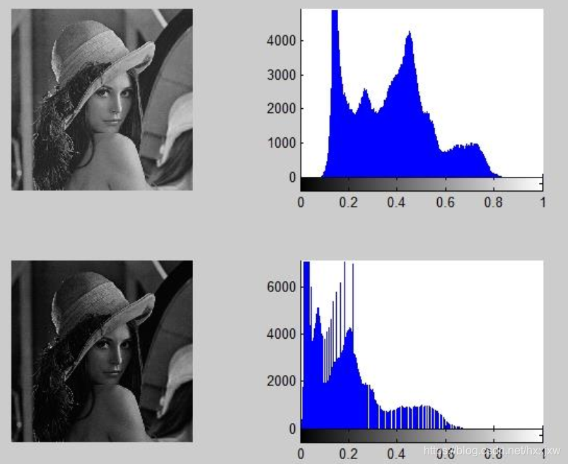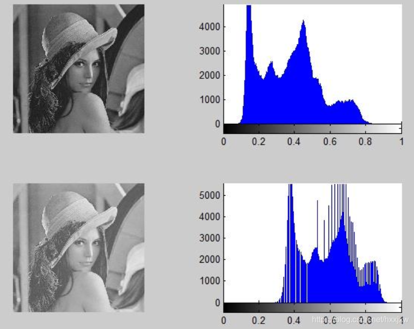 直方图增强:恰当的直方图变换可使图像的灰度间距拉开或使灰度分布均匀,从而增大对比度,使图像细节清晰,达到增强的目的。