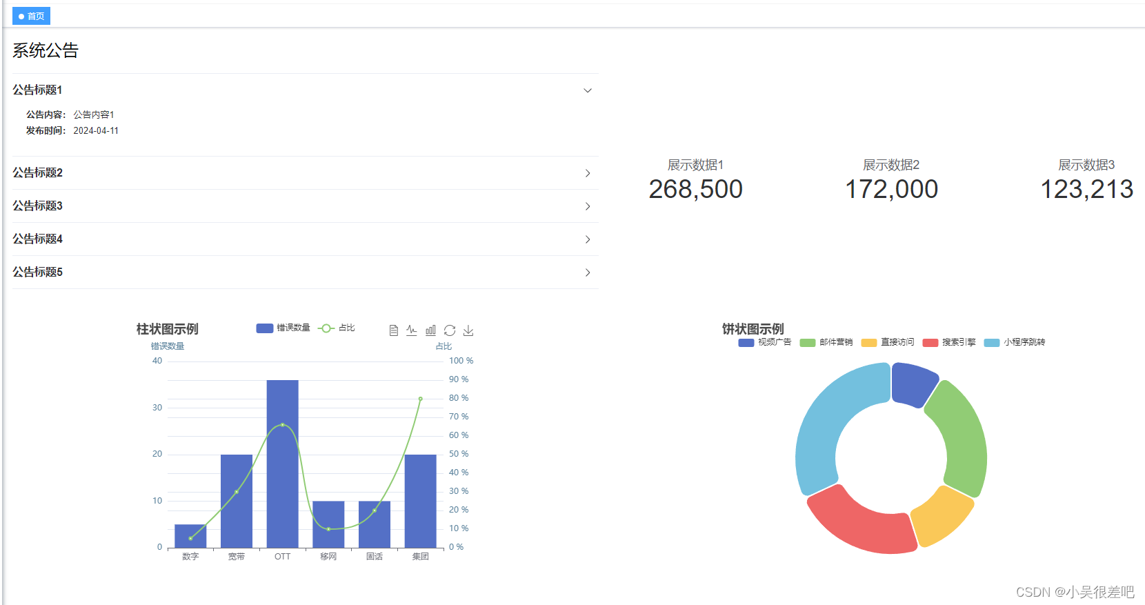 Vue3+SpringBoot+echarts实现数据可视化首页