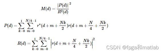 但是由于循环前缀的存在,这种方法的判决函数有很大的旁瓣,在循环前缀较长时,几乎与主瓣的高度相同,在信噪比较低的情况下,很难得到正确的定时结果。为了消除Schmidl算法出现的平顶影响,minn等人改变了训练队列的结构,并重新设计了一种新的同步度量函数,虽然成功消除了schmidl算法的平顶效应,使得同步自相关峰变得尖锐,提高了定时同步估计的精度和可靠性,但是该向相关峰还不够尖锐,而且在同步度量函数