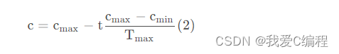 式中,c m a x 、 c m i n c_{max}、c_{min}c max 、cmin分别表示递减区间的最大值与最小值,t tt表示当前的迭代次数,T m a x T_{max}T max表示最大迭代次数。