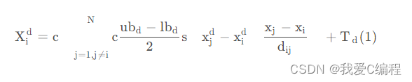 式中,d dd是表示变量维度,i , j i, ji,j表示蝗虫个体编号,u b d 、 l b d ub_d、lb_dubd、lbd分别表示变量的上限与下限,T d T_dT d表示最优的蝗虫个体位置,d i j d_{ij}dij是两个蝗虫个体之间的欧式距离,c是控制参数,用于平衡算法的全局探索和局部开发。函数s ( ) s( )s()表示两个蝗虫个体之间的交互力影响。