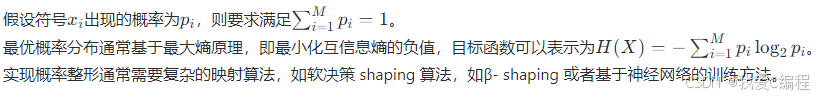 概率整形QAM通过改变各个星座点的使用概率,使得具有较低能量的符号出现得更频繁,从而降低整个系统的平均能量,进而提高信号的传输效率。这一过程实际上是对信号进行软决策前向纠错编码(FEC)之前的一种非均匀映射。概率整形的核心是利用非均匀的符号分布来逼近容量极限,通常采用高斯分布,因为高斯分布是最接近香农极限的分布。