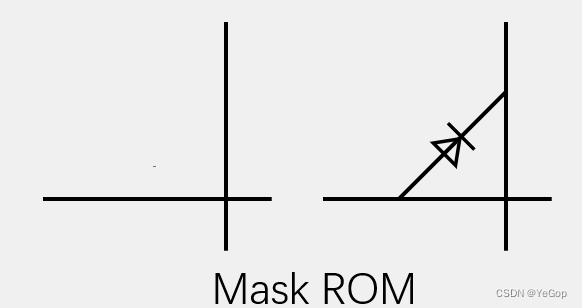 并且,由于使用的是这种二极管为基础的电路,它存储的数据就无法被更改,所以得名只读存储器。Mask ROM的数据写入是不可逆的,即一旦数据被写入,就无法更改。这种类型的存储器通常用于存储固定内容,因为它的成本相对较低,且由于其不可擦写的特性,适合于大批量生产。Mask ROM的优点包括成本较低和稳定性较高,因为它们不像其他可擦写存储器那样需要额外的擦写机制。然而,它们的缺点是缺乏灵活性,一旦制造完成,就不能更改存储在其中的数据。