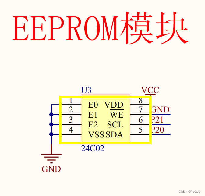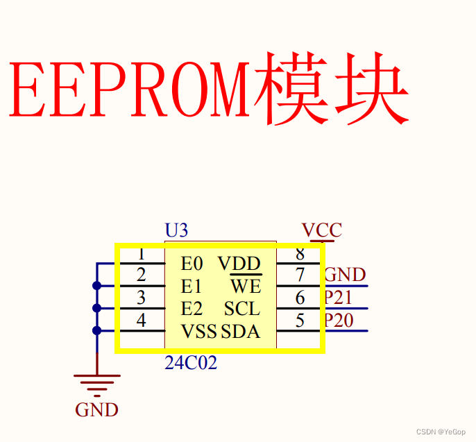 这里写的是EEPROM,其实就是我们前面所说的E2PROM,电可擦除编程ROM,这里的这个引脚好像和前面标注的不太一样,其实是一样的,只是不同的工程师对它有不同的命名罢了
