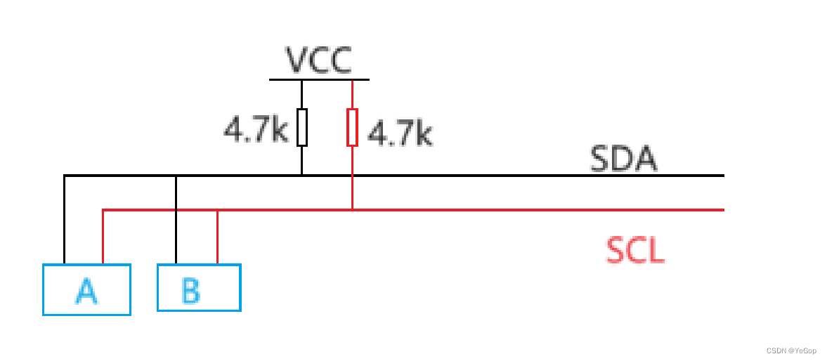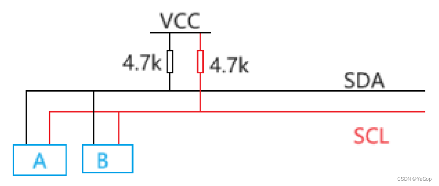 - SCL和SDA各添加一个上拉电阻,阻值一般为4.7KΩ左右