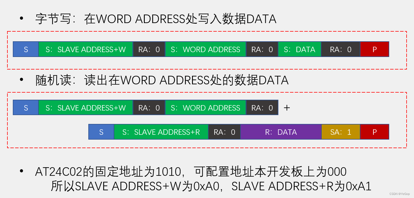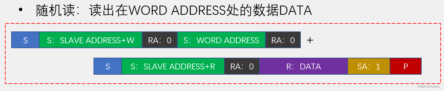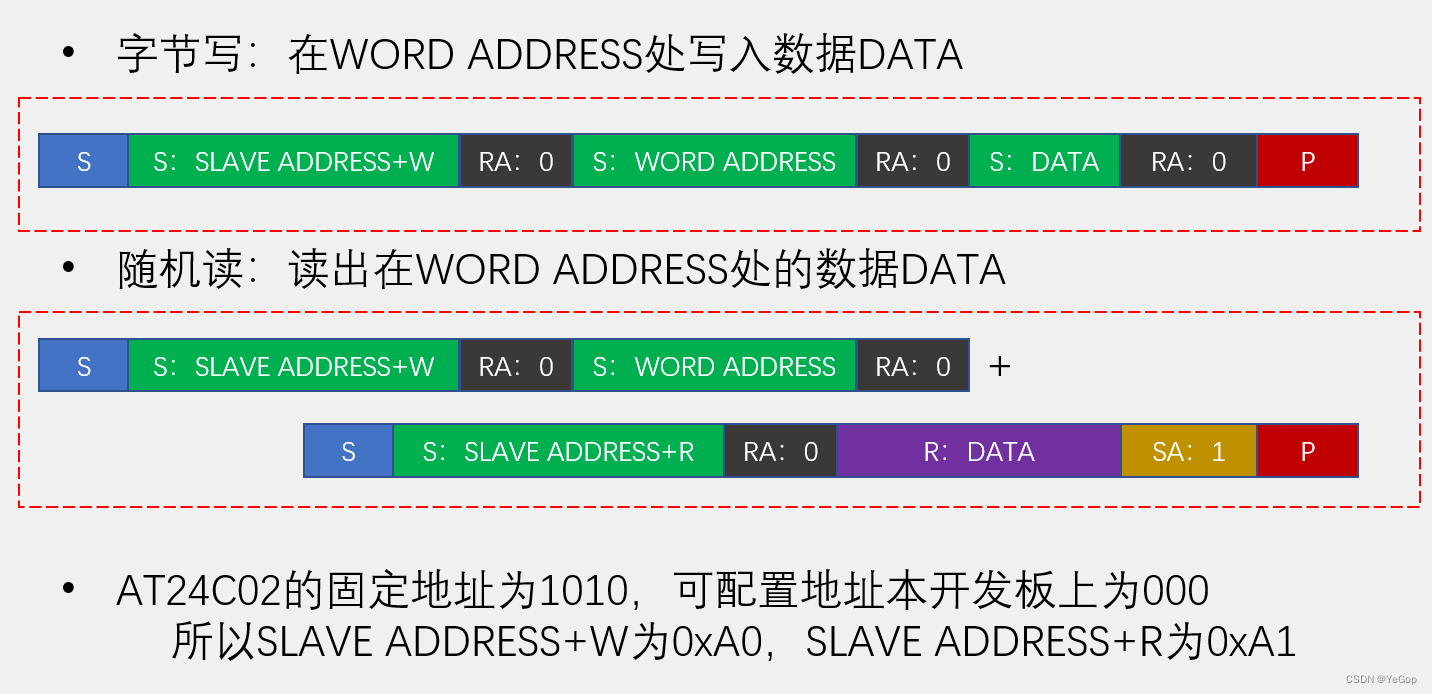 SLAVE ADRESS+R/W分为前面七个位表示地址和最后一位表示读/写模式: