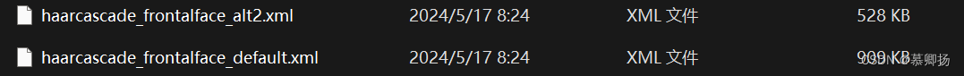 在代码的同一目录下,添加(haarcascade_frontalface_default.xml)和(OpenCV_demo\haarcascade_frontalface_alt2.xml)两个 xml文件。