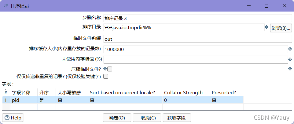 双击“排序记录 3”控件,进入“排序记录”界面,在“字段”框中添加字段pid,并对其进行排序