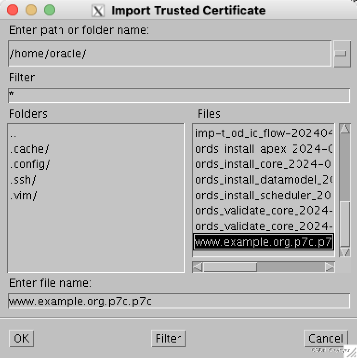 将之前下载的证书上传至服务器,然后导入信任证书。