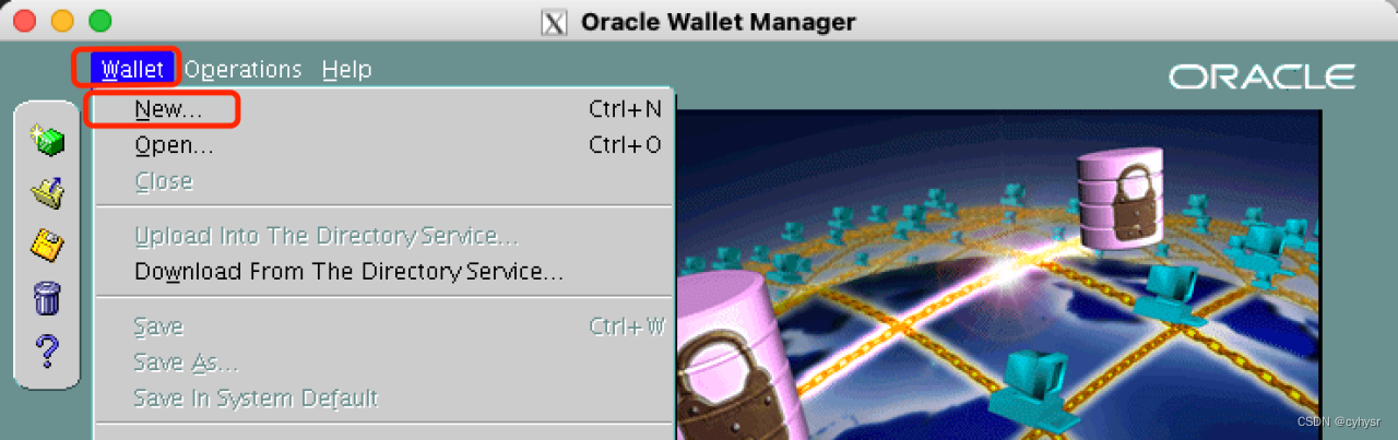 登录oracle数据库服务器,使用Oracle Wallet Manager新建wallet。