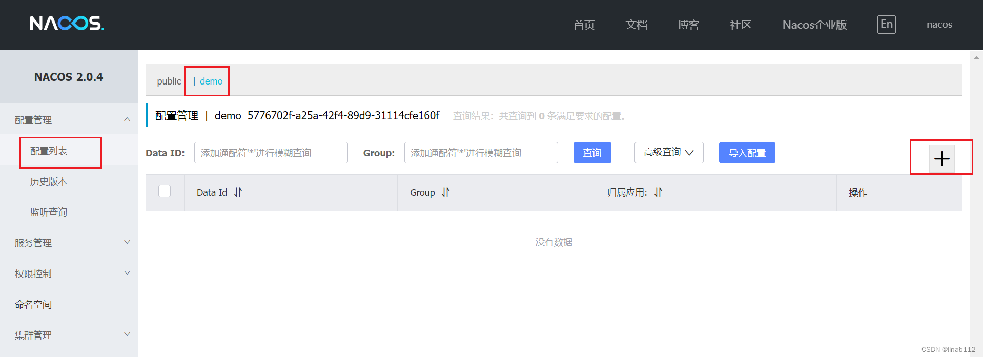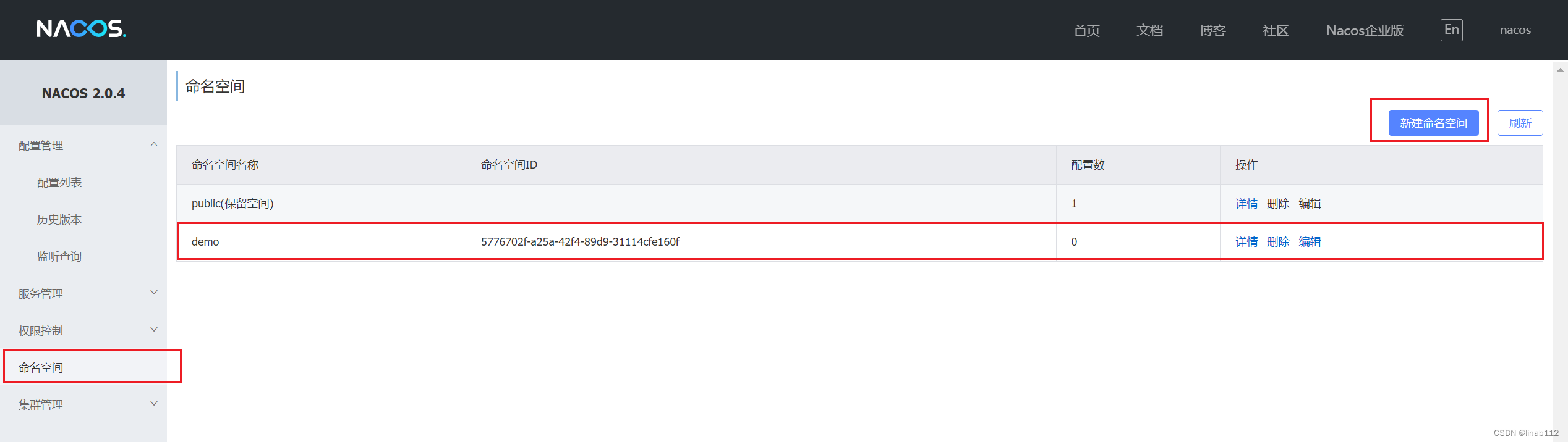 配置nacos地址及命名空间,如果新创建了命名空间,需要指定一下命名空间id