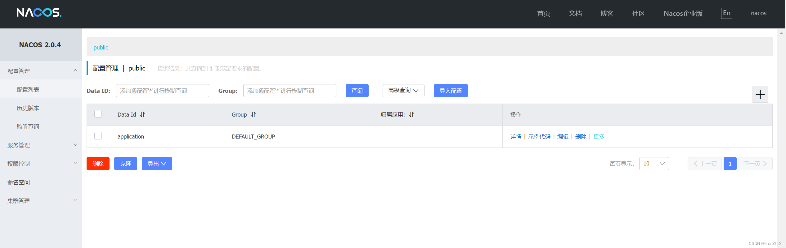springboot项目中存在好多配置文件,比如配置数据信息,redis信息等等,配置文件可以直接放在代码,也可以放在像nacos这样的组件中,实现动态的管理,修改配置文件后不用进行项目的重启,直接可以实现自动刷新。启动项目之后,就发现可以引用到配置文件中的内容,并且在nacos画面中修改了配置文件中项目的值,再次发起请求,发现代码中引用的值也会自动刷新。输入配置文件的data id,data i