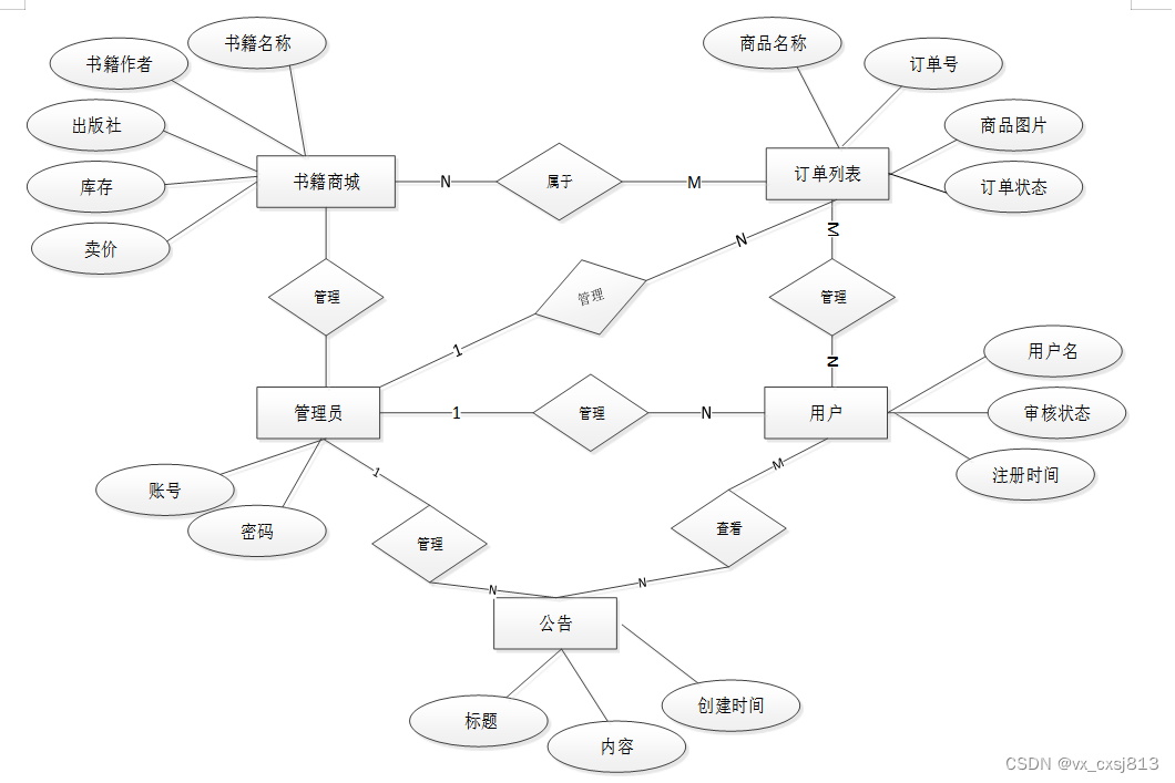 下面是整个网上书城小程序中主要的数据库表总E-R实体关系图。