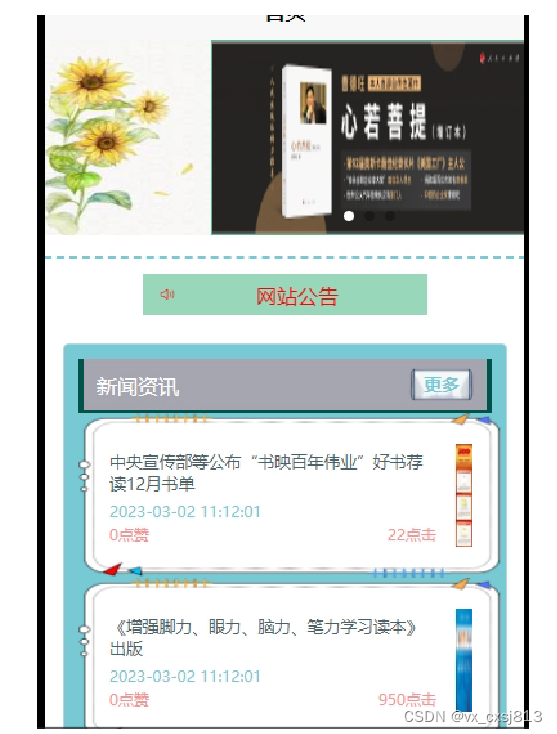 (2)用户查看新闻资讯:用户进行资讯的查看,可以进行点赞评论。