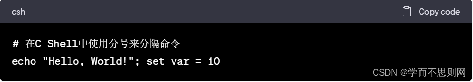 语法:C Shell的语法与Bash等shell有一些不同之处。例如,命令的结束通常使用分号而不是换行符。