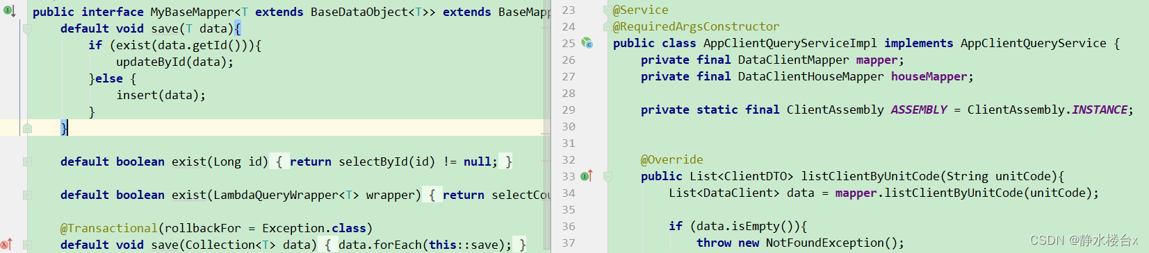 因为@MapperScan的范围为整个包下面了,@MapperScan作用:指定要变成实现类的接口所在的包,然后包下面的所有接口在编译之后都会生成相应的实现类(或者说@MapperScan 配置一个或多个包路径,自动的扫描这些包路径下的类,自动的为它们生成代理类)。所以导致service对应的实现类都被扫描生成一个Bean对象,即使已经用@Service注解也会再生成一个Bean对象。