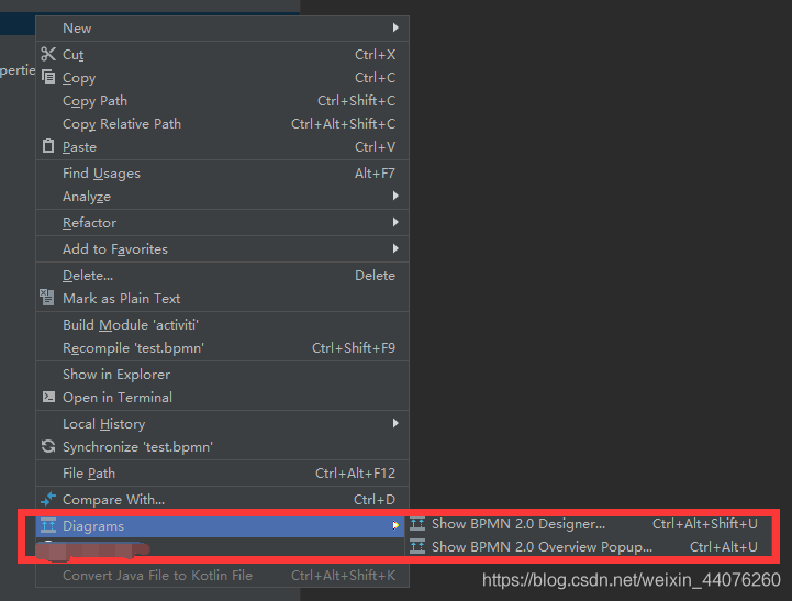 1.xml右键发现没有Diagrams(红框里的内容)2.解决办法点击File =>> Settings =>> Plugins =>> 启用JBOSS jBPM