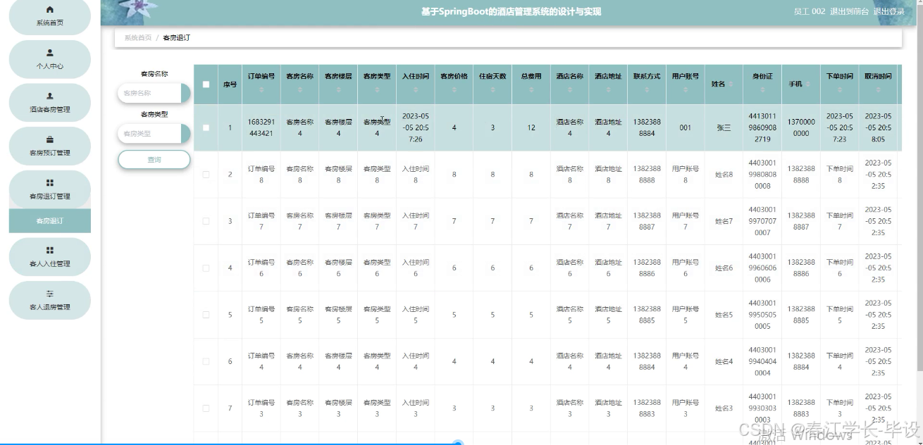本研究旨在利用Spring Boot框架,设计并实现一套集用户管理、酒店客房管理、客房类型管理、客房预订与退订、客人入住与退房、员工管理等功能于一体的酒店管理系统。通过该系统,酒店可以实现对客房资源的有效监控和高效利用,提升预订、入住、退房等业务流程的自动化程度,从而提高服务质量和运营效率。同时,该系统还能为客人提供更加便捷、个性化的服务体验,增强客户黏性,为酒店的长期发展奠定坚实基础。