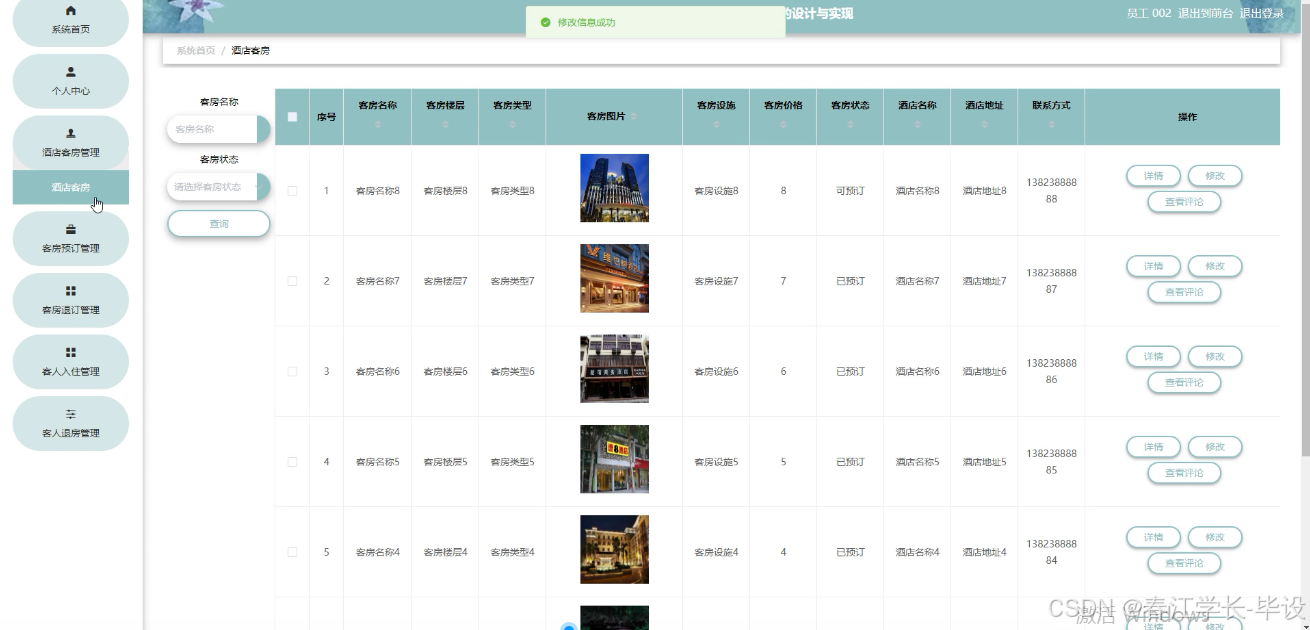 在当前数字化浪潮下,开发一套基于Spring Boot的酒店管理系统,不仅能够提升酒店的服务质量和运营效率,还能增强客户体验,促进酒店业务的持续增长。本研究的意义在于,通过设计并实现一套功能完善的酒店管理系统,不仅能够解决酒店管理中存在的实际问题,提升酒店管理的自动化和智能化水平,还能为酒店行业提供一个可借鉴的信息化解决方案。通过该系统,酒店可以实现对客房资源的有效监控和高效利用,提升预订、入住、
