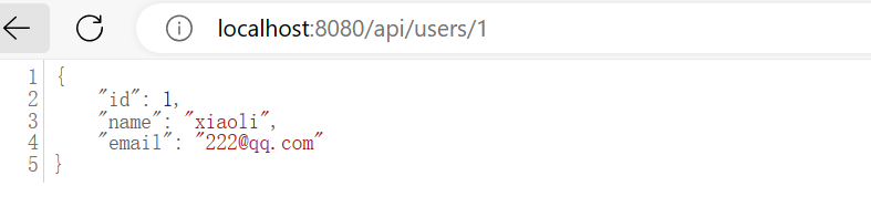 启动应用,并访问。实现从数据库读取数据的效果,如下所示:http://localhost:8080/api/users/1