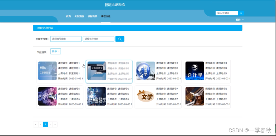 课程信息,在该页面可以搜索查看课程编号、课程名称、上课地点、开始时间、结束时间、教师编号等详细信息,如图所示。