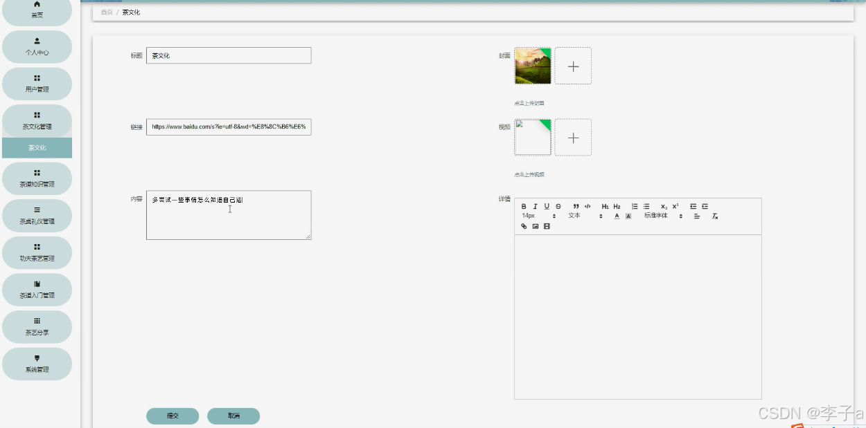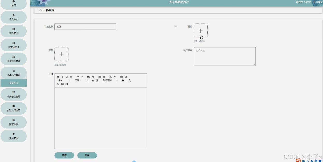本研究的核心内容围绕茶文化网站的系统功能展开,具体包括: