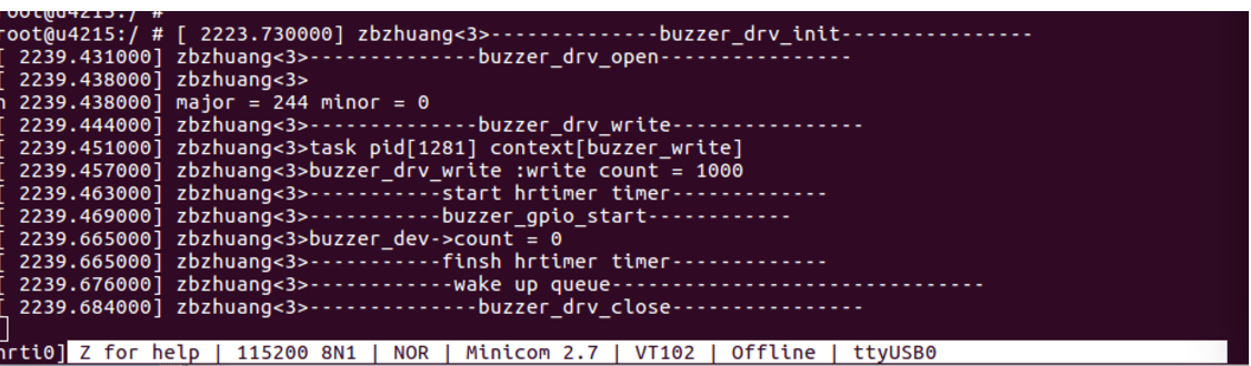 程序描述:本文控制的设备是无源蜂鸣器,由于无源蜂鸣器是需要产生一定的频率的PWM才能够控制蜂鸣器,不像有源蜂鸣器,只需要提供高低电平就可以控制蜂鸣器。linux内核普通的定时器,由于具有一定的局限性,不能达到纳秒级别的定时,使用普通的定时器模拟GPIO口产生PWM会导致蜂鸣器出现杂音,因此要使用hrtimer高精度定时器模拟GPIO口产生PWM可以极大的改善性能。使用信号量sem只是为了避免多个应用程序打开设备,使用等待队列是为了让程序可以按照指定的方式去运行,如果不加等待队列,在启动hrtimer定时器之后就会不会等待定时器完成之后在关闭设备,因此需要加入等待队列,等待定时器定时的工作完成之后再唤醒等待队列。虽然程序可以使用GPIO模拟PWM产生一定频率的信号去控制无源蜂鸣器,但是还是存在一定的局限性,因为定时器也是加入内核进行调度,所以有可能杂定时的时候会导致输出的PWM被打断,导致杂音的出现。因此严格来说不能完整的输出一段不被打断模拟PWM信号。如果有什么好方法可以实现的话,可以共同探讨。好吧不说了上代码吧。