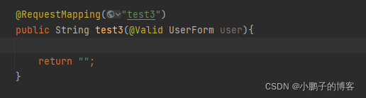 我们随便建一个提交表单类来模拟提交操作@Datapublic class UserForm {@NotNull(message = "不能为空!")private String name;@NotNull(message = "年龄为空!")@Max(value = 150,message = "大于150岁")private Integer age;}1.我们先看直接使用@Valid对单个表单对