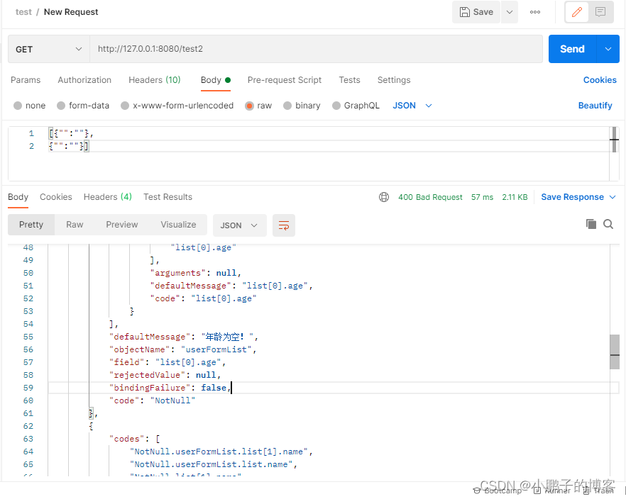 测试结果:名称不能为空、年龄不能为空这是符合我们预期的