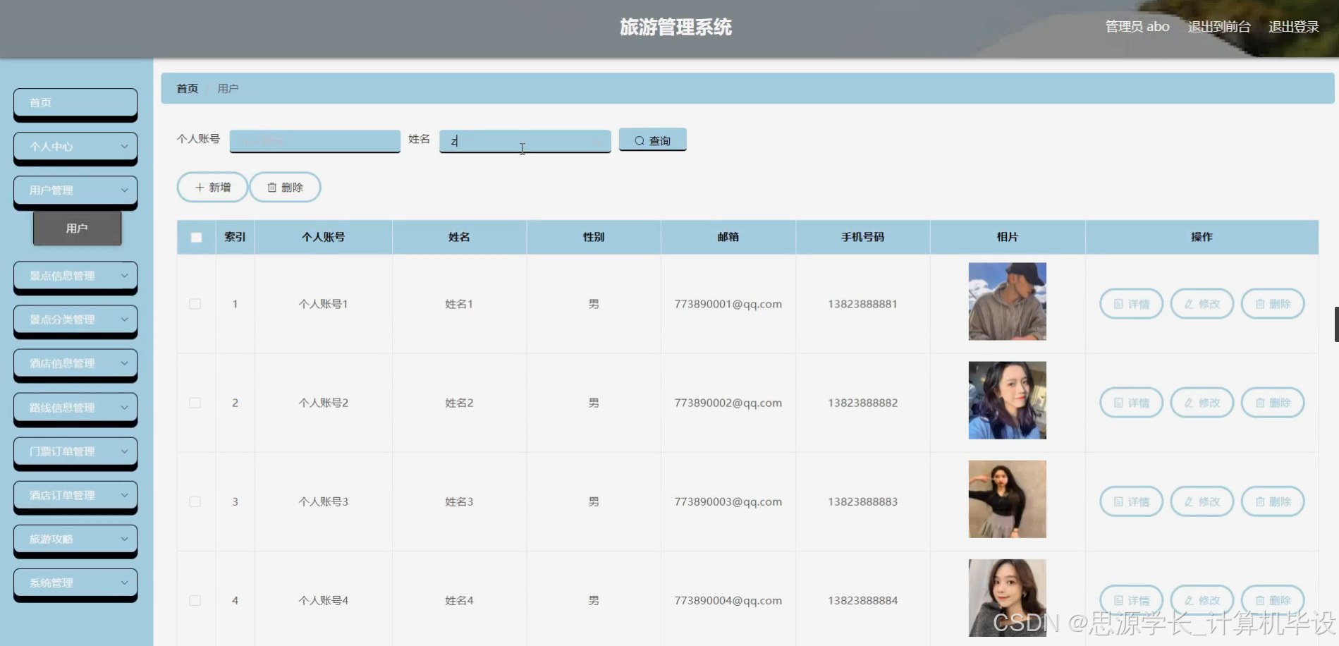 旅游管理系统的研发对于提升旅游业的管理水平和服务质量具有重要意义。一方面,该系统能够帮助旅游企业实现资源的有效整合和合理配置,提高运营效率;另一方面,通过提供丰富的景点信息、酒店信息和路线规划等功能,系统能够为游客提供更加便捷、全面的旅游服务。此外,系统的应用还有助于推动旅游业的数字化转型,促进旅游产业的可持续发展。