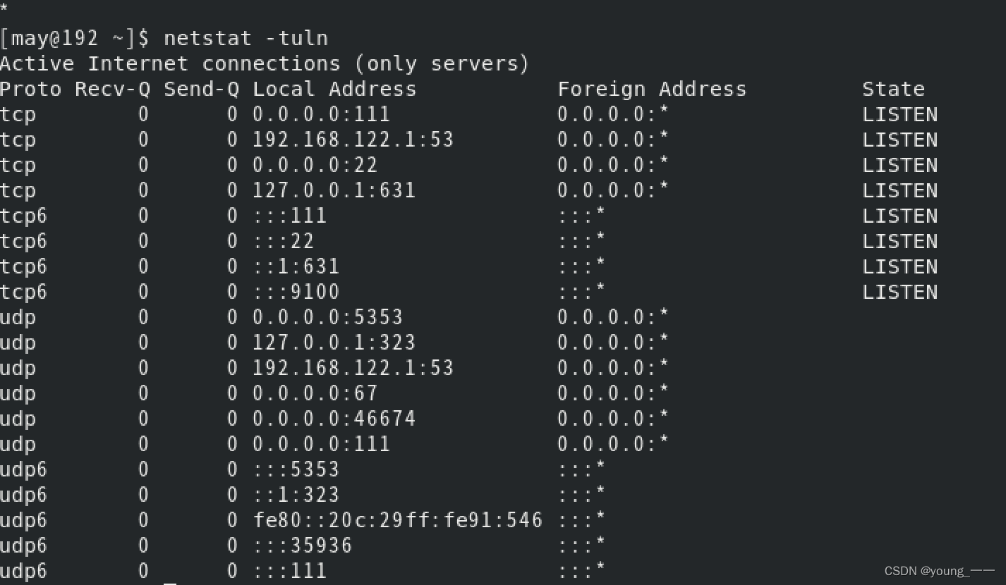 如果你想要看到哪些程序正在监听或使用哪些端口,可以去掉-n