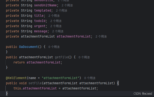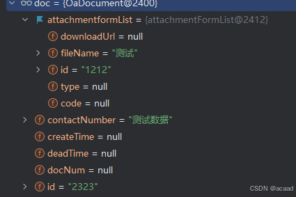 其余两个实体分别定义为OaDocument及attachmentFormList。