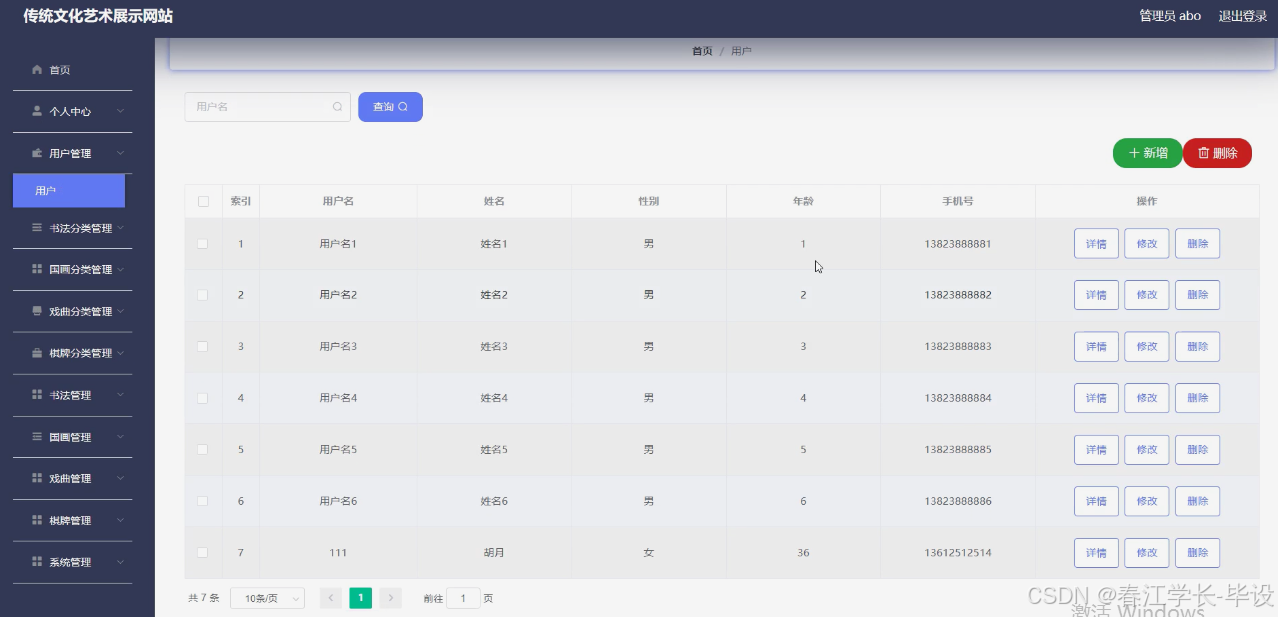 本研究将围绕传统文化艺术展示网站的系统功能展开,具体包括用户管理、书法分类与展示、国画分类与展示、戏曲分类与展示、棋牌分类与展示等核心模块。用户管理模块将实现用户的注册、登录、个人信息管理等功能;书法、国画、戏曲、棋牌等分类展示模块将按照不同的艺术形式进行分类,提供作品展示、作品详情查看、艺术家介绍等功能;同时,网站还将支持作品搜索、用户评论与分享等互动功能,以增强用户的参与感和归属感。通过这些功能模块的设计与实现,构建一个功能完善、用户友好的传统文化艺术展示网站。