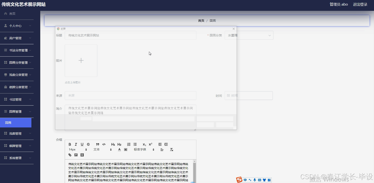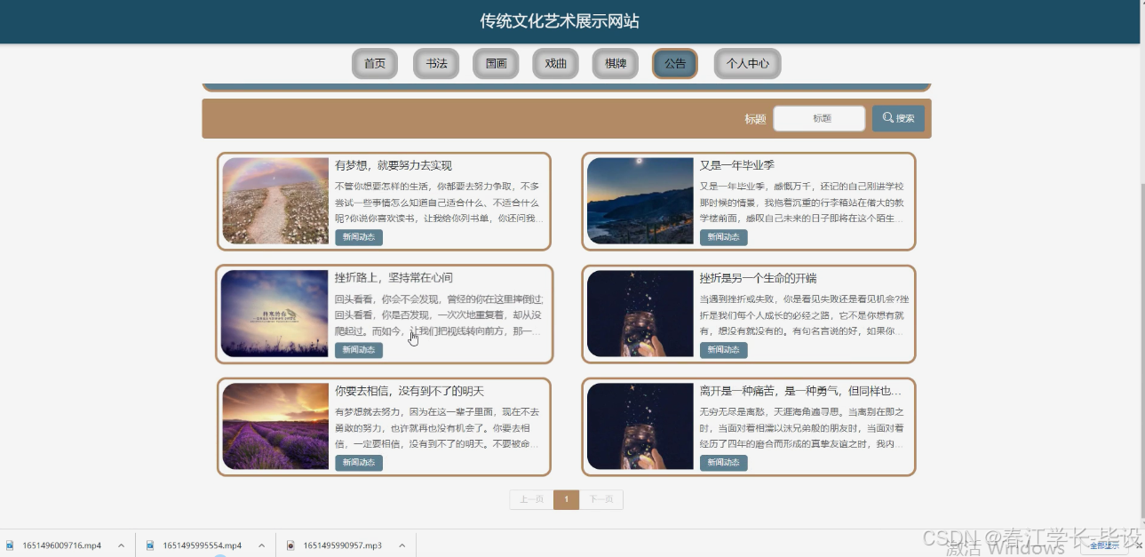 在当今社会,随着数字化技术的迅猛发展,传统文化艺术的传播与展示面临着新的机遇与挑战。传统文化艺术作为民族瑰宝,承载着丰富的历史与文化内涵,是连接过去与未来的重要纽带。然而,传统的展示方式往往受限于时间、空间等因素,难以广泛、深入地触达公众。因此,构建一个集书法、国画、戏曲、棋牌等多种传统文化艺术形式于一体的展示网站,不仅能够打破时空限制,使传统文化艺术以更加便捷、生动的方式呈现给公众,还能够通过数字化手段,激发公众对传统文化艺术的兴趣与热爱,推动其传承与发展。