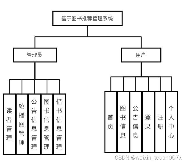 对本系统进行全面的系统功能的分析,可以得出基于Springboot的图书推荐管理系统的功能模块图,如图4-1所示。