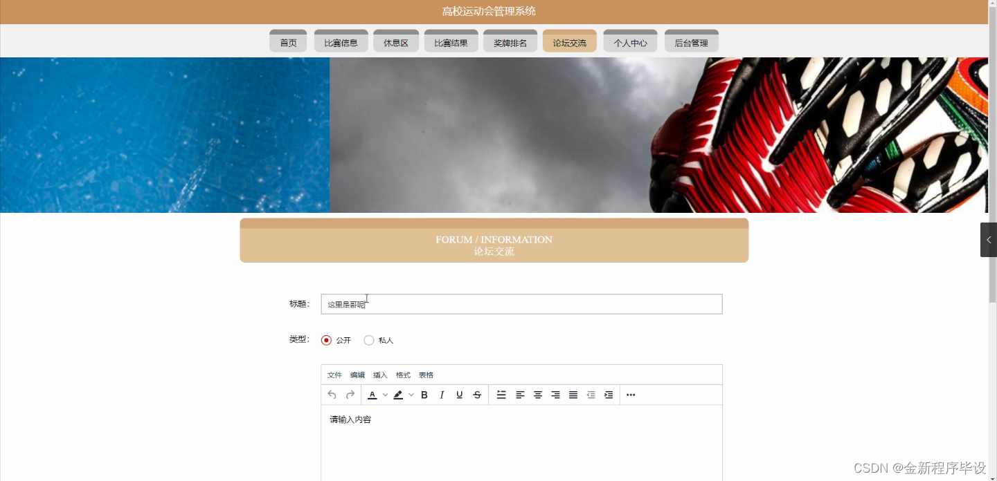 本研究旨在通过开发一套功能完善的高校运动会管理系统,实现运动会管理的信息化、智能化和高效化。具体而言,该系统将涵盖运动员信息管理、班级信息管理、比赛信息管理、比赛项目管理、休息区管理、报名信息管理、比赛结果管理、个人成绩管理以及奖牌排名等功能,全面提升高校运动会管理的水平和效率。同时,通过系统的应用,我们还期望能够推动高校运动会管理的规范化、标准化进程,为高校体育事业的发展注入新的活力。