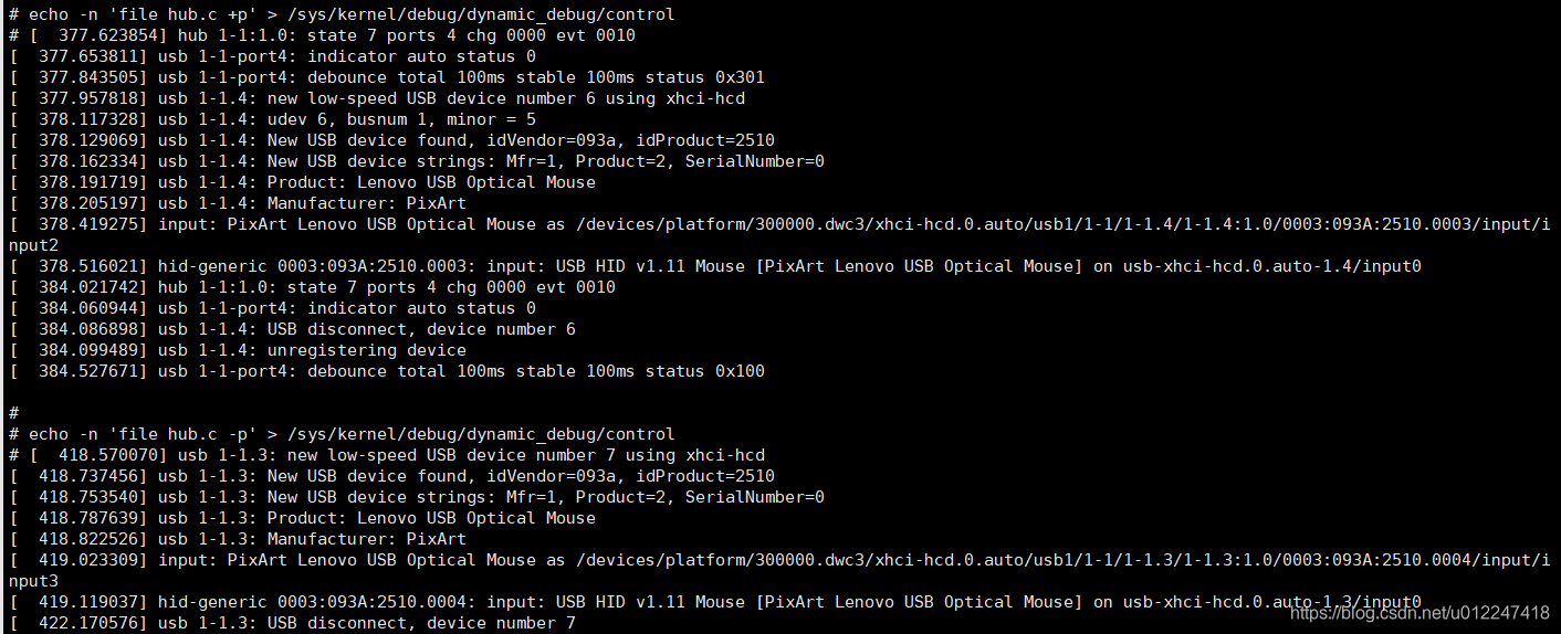 disable: echo -n 'func hub_event -p' > /sys/kernel/debug/dynamic_debug/control