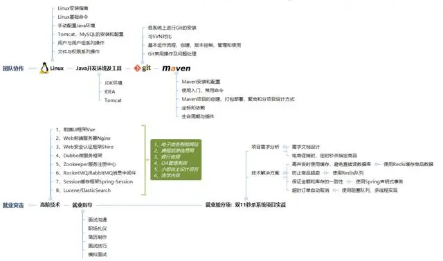 ,那就不要花太多的时间去学习其他的技术语言,高数之类的,不如好好想着如何夯实Java基础。下图涵盖了应届生乃至转行过来的小白要学习的Java内容: