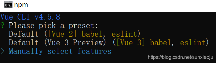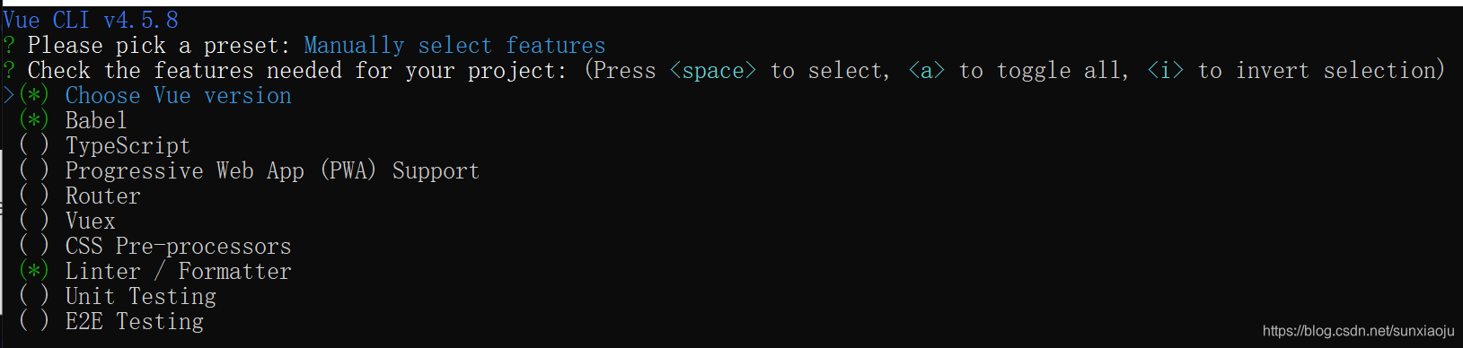 3、然后选择Manually select features,表示自选项目配置(按上下键即可选择),如下图所示:
