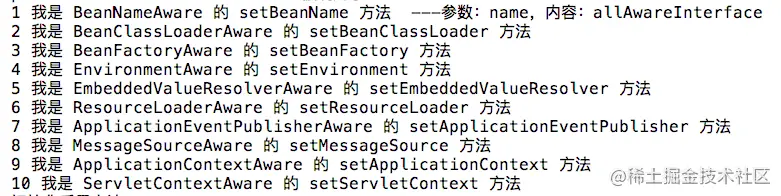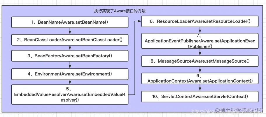 容器属性其实就是容器自带的属性,这些属性都是spring本来就有的;可以肯定的是,它们都是 Aware 接口的实现类,主要有以下实现类,我已经将它们的执行顺序都排列好了,
