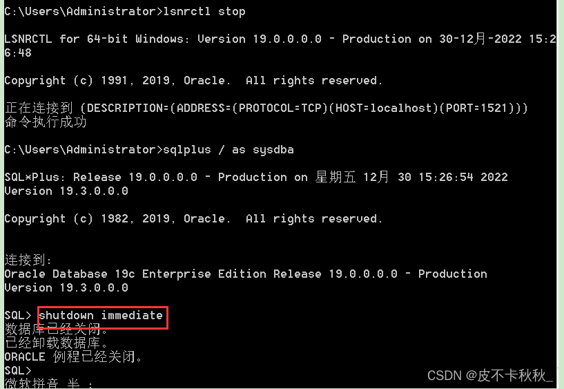 lsnrctl stop 停止监听,并关闭数据库