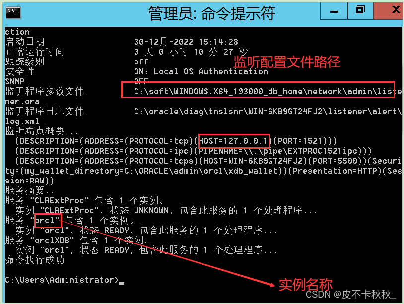 启动oracle,并查看监听